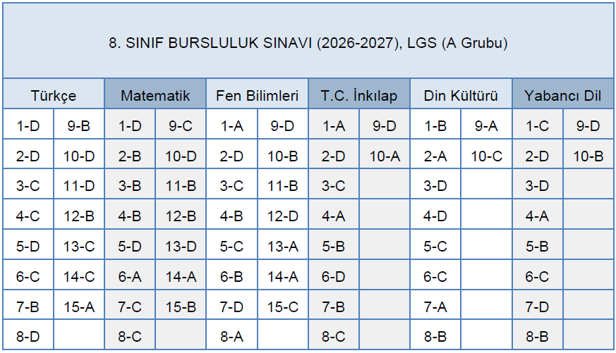 8. SINIF BURSLULUK SINAVI CEVAP ANAHTARI