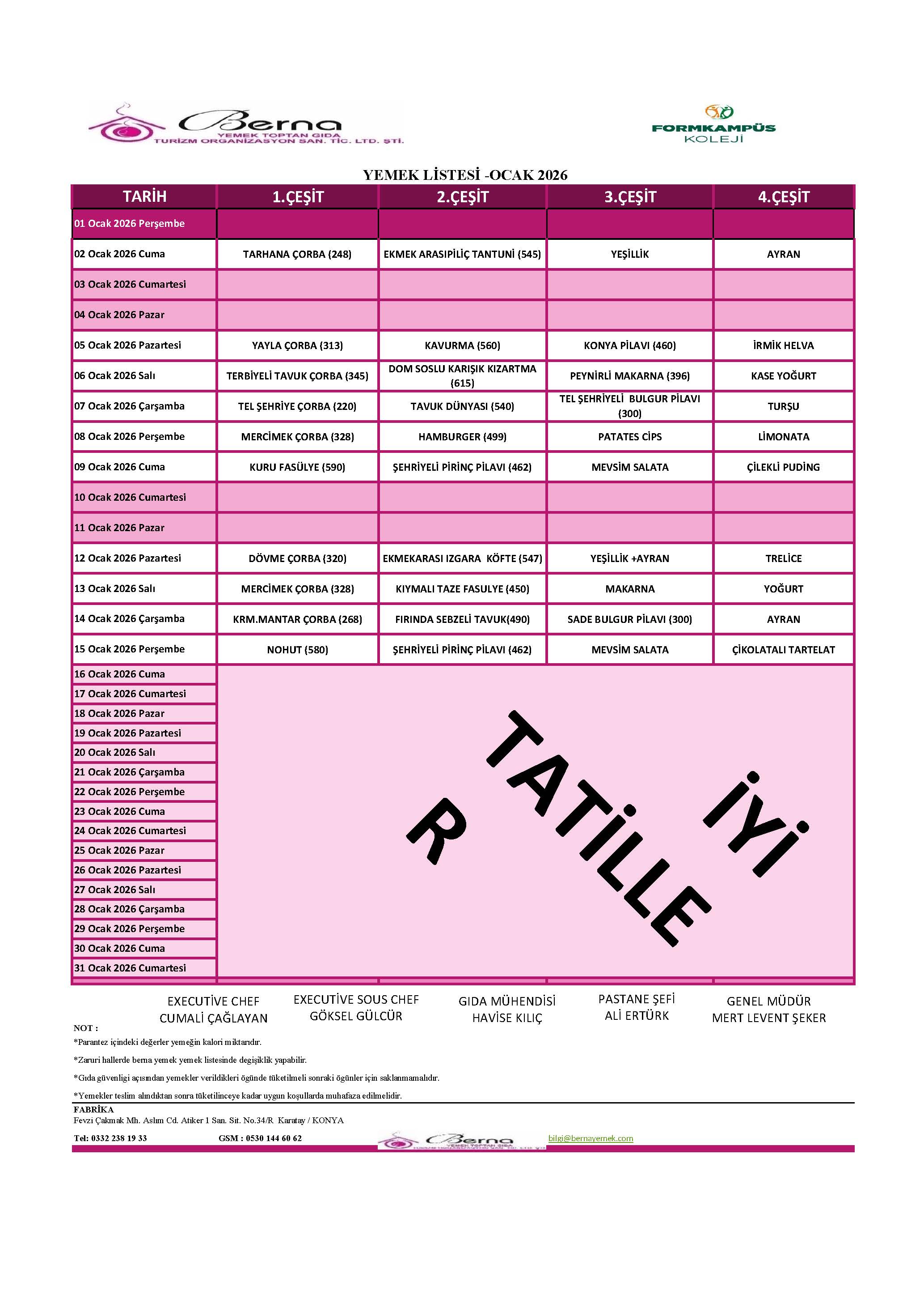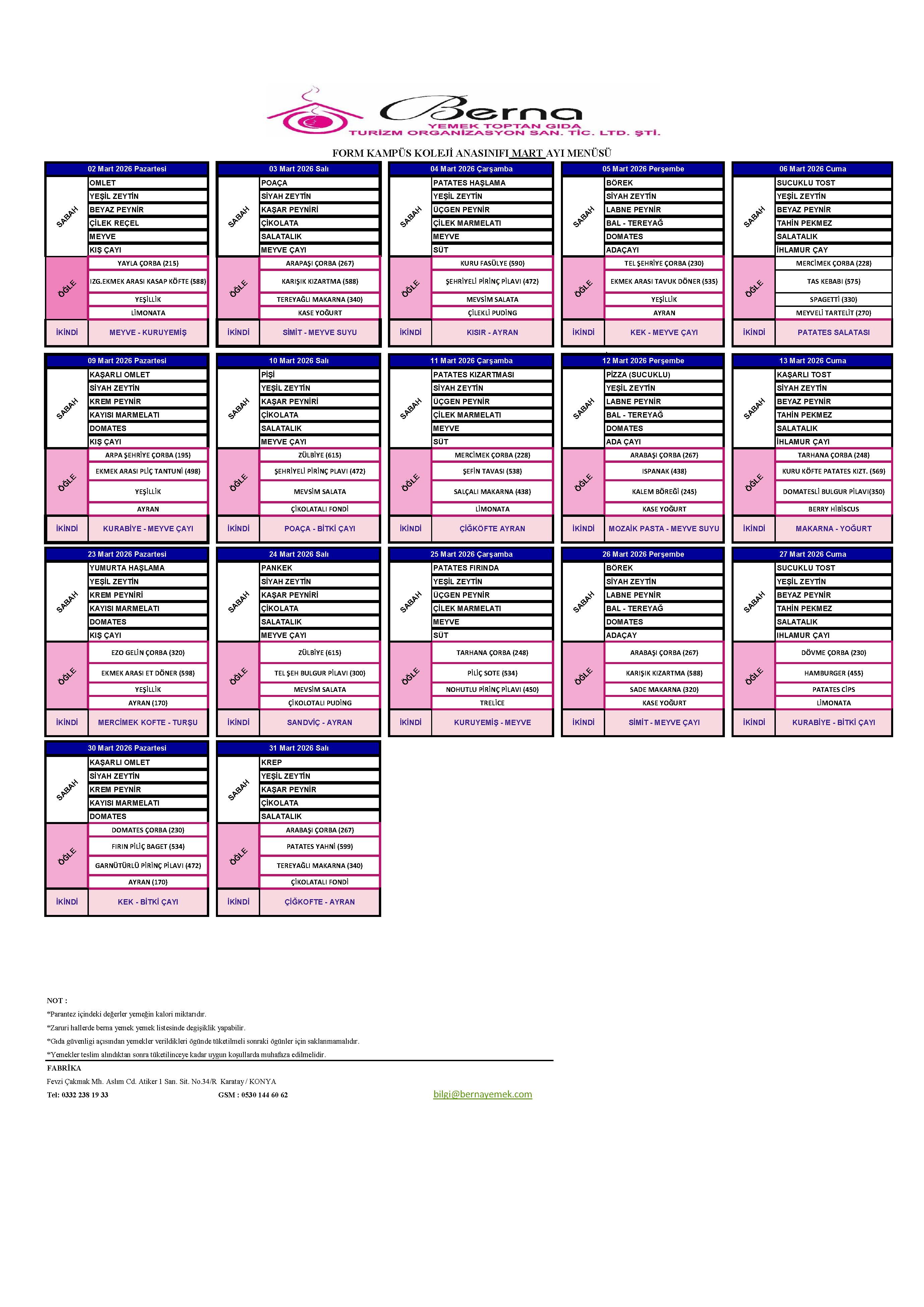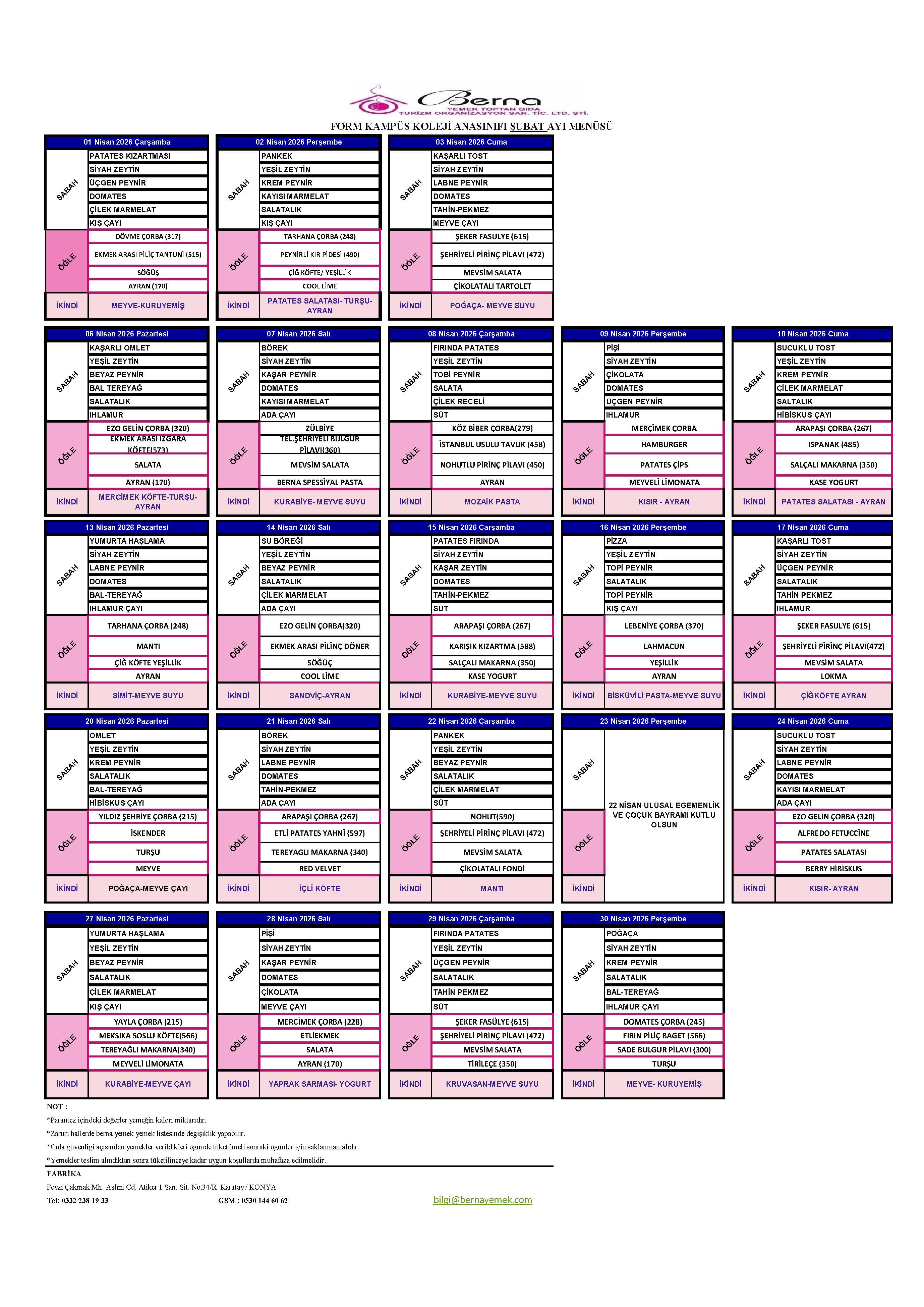 Aylık Yemek Menüsü