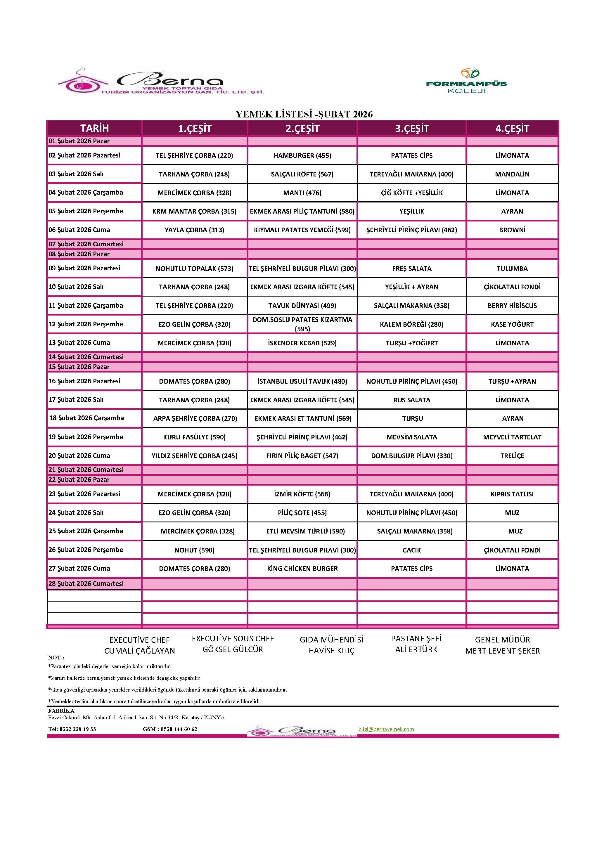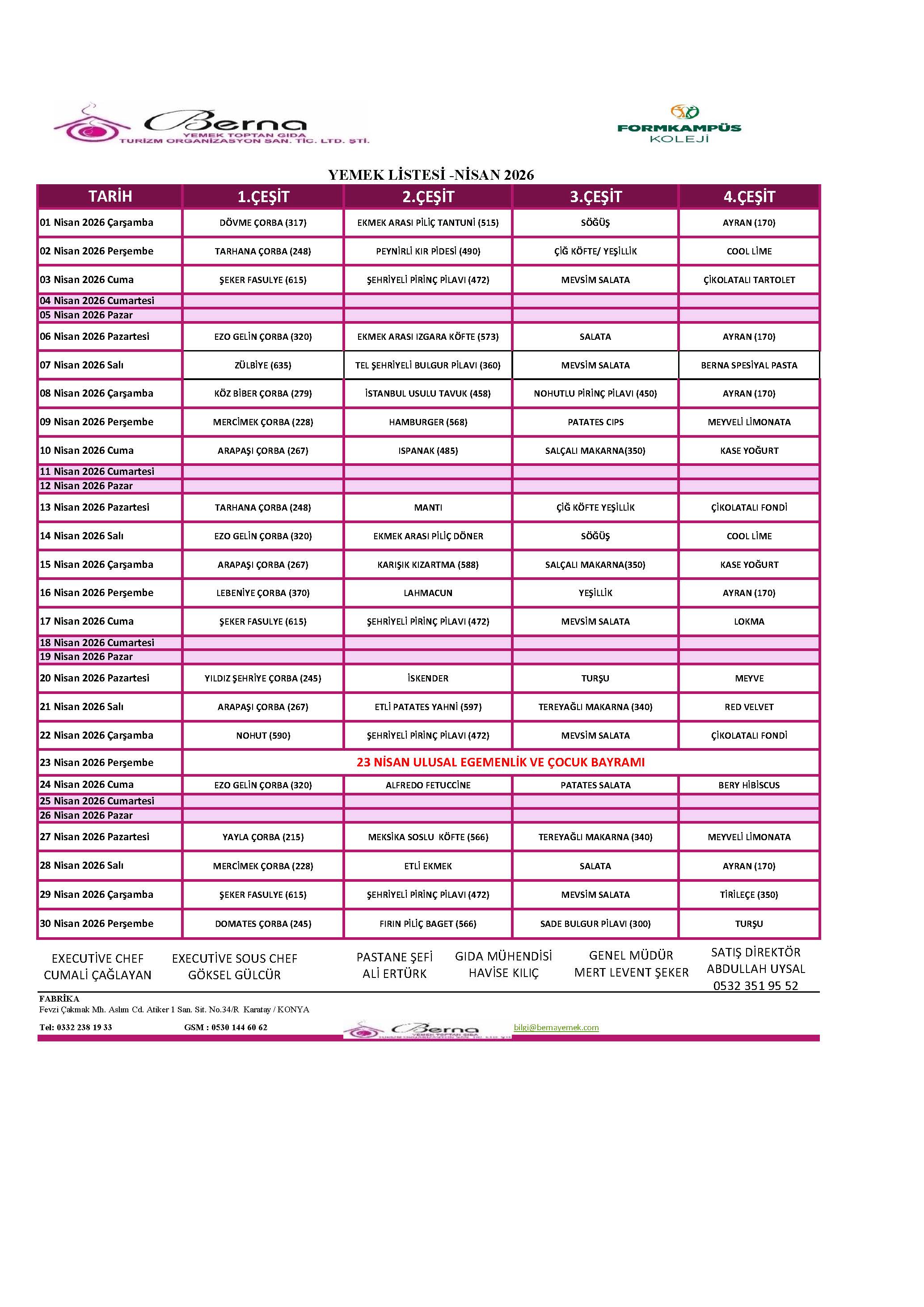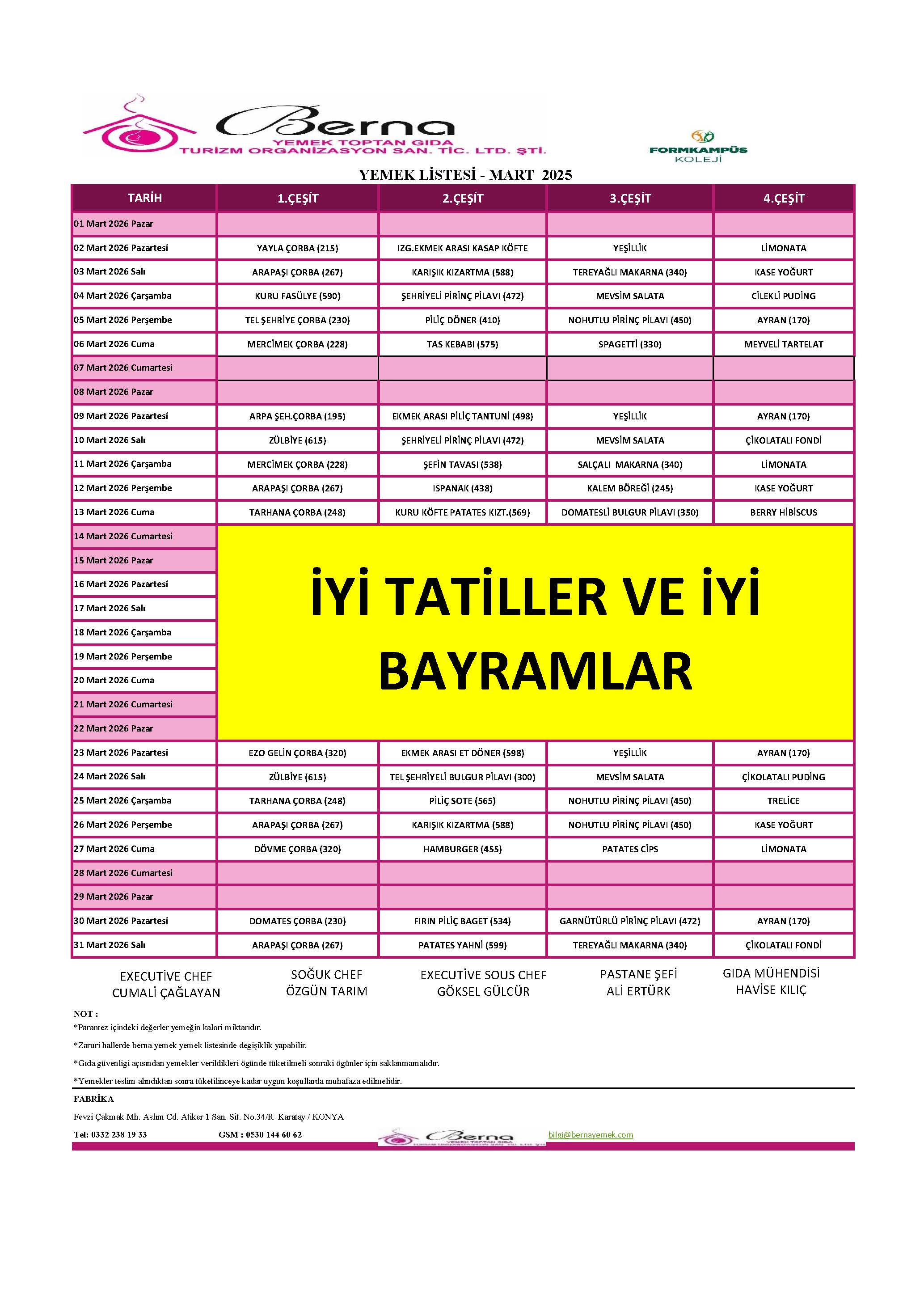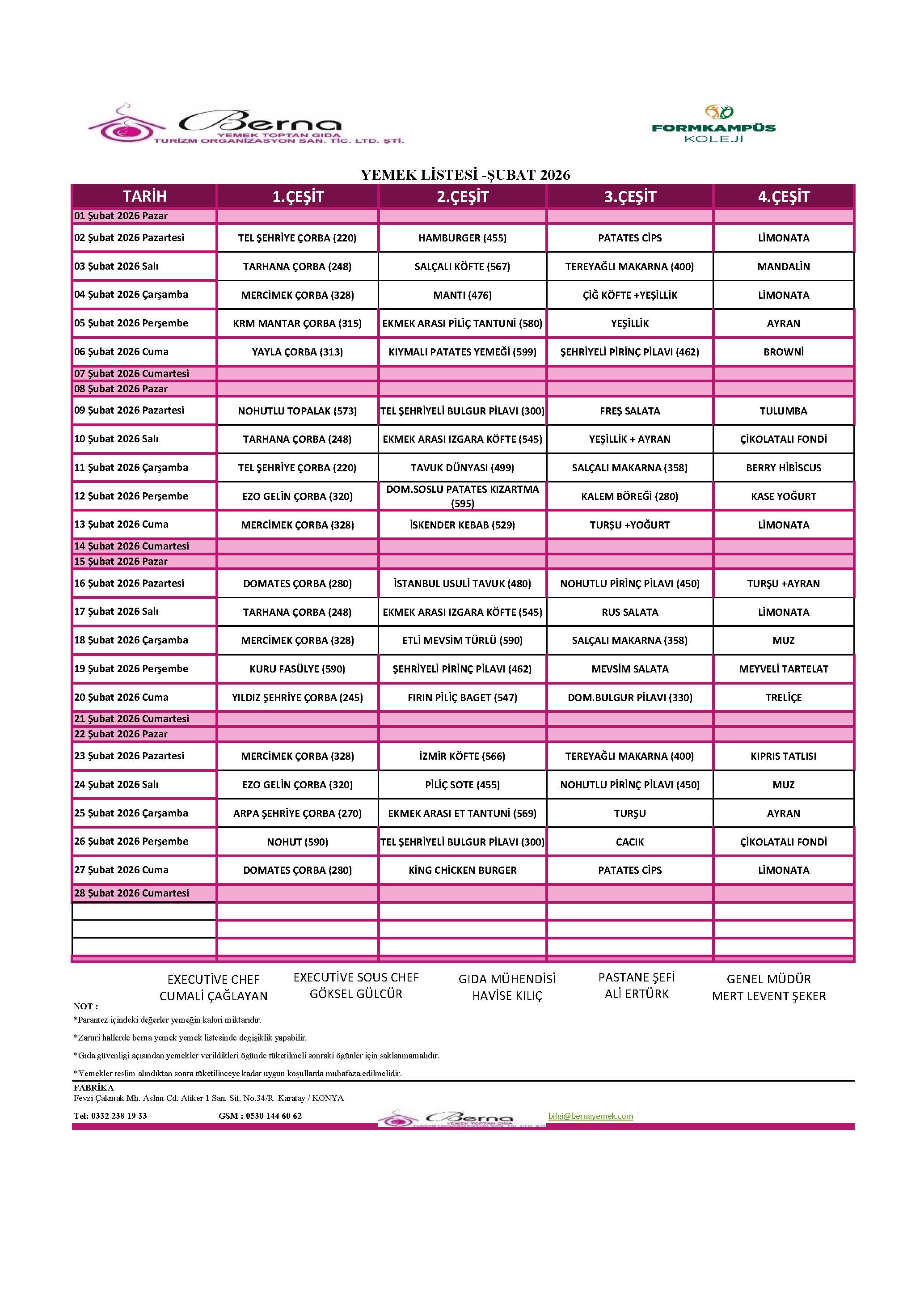 Aylık Yemek Menüsü