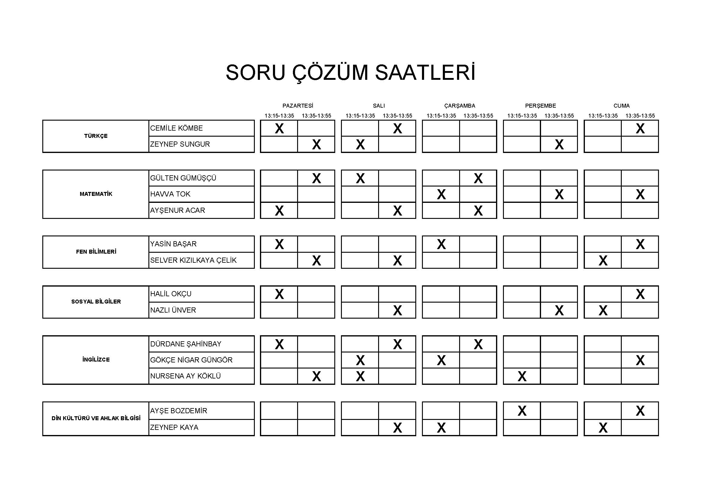 SORU ÇÖZÜM SAATLERİ için tıklayınız.